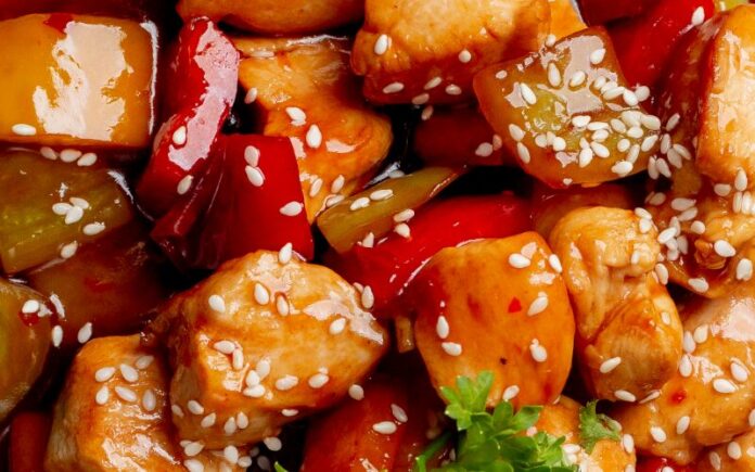 Una idea exquisita, festiva, agridulce y totalmente vegana, perfecta para Navidad, usando tofu y ciruelas.Tofu agridulce con ciruelas, jengibre y toque navideño