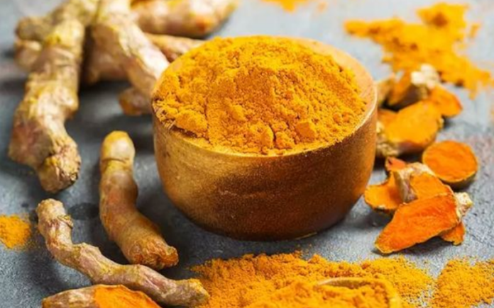 La cúrcuma (Curcuma longa) raíz se utiliza comúnmente como especia