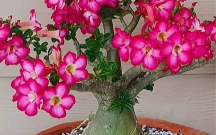 Planta decorativa Rosa del Desierto es conocida por sus vistosas flores