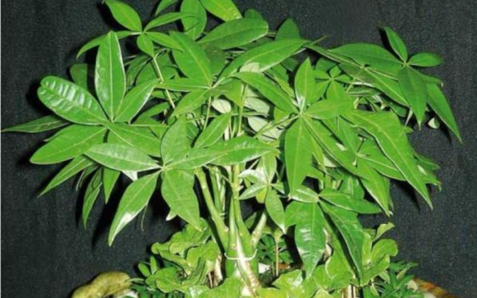 La planta Pachira árbol decorativo pequeño que suele tener múltiples troncos...